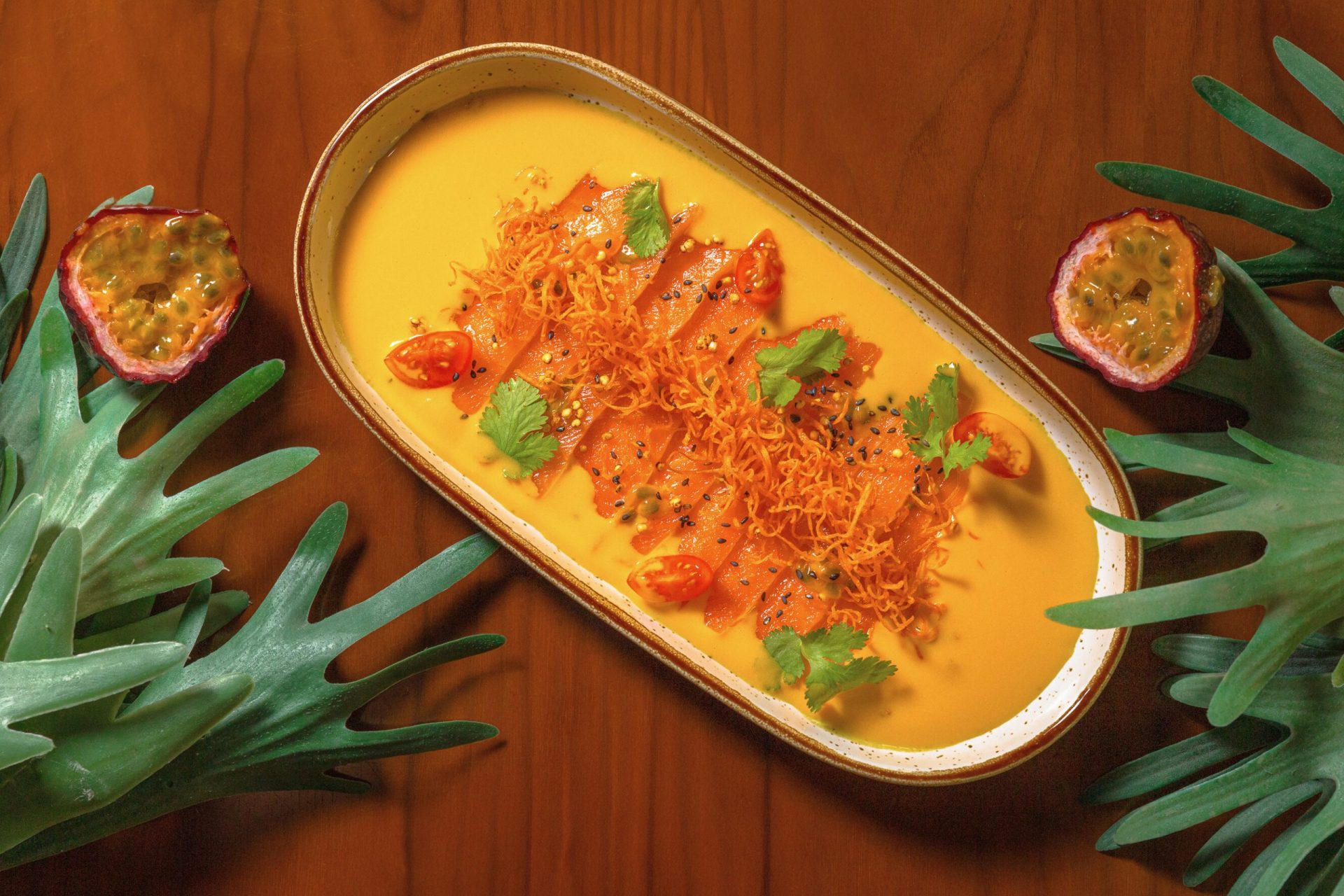 Nos pratos principais, a carta revela um leque de opções tentadoras, como o cebiche Tropical, uma combinação vibrante de camarões e salmão com toques peruanos, e o arroz borracho, um clássico criollo com um toque contemporâneo. Os amantes da culinária nikkei também terão motivos para celebrar com o tataki de salmón e o vegetariano aeropuerto capón. Para os mais aventureiros, o risotto norteño de camarones promete uma fusão ítalo-peruana irresistível.