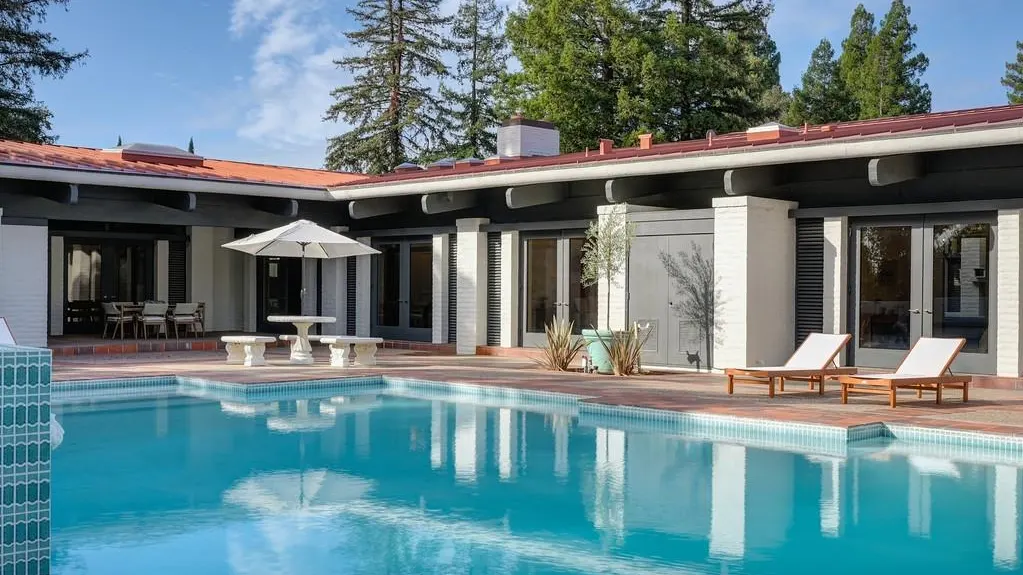 A casa foi construída em 1975 num terreno com vista para o rio American, com oito quartos, 10 casas de banho, duas cozinhas, seis fontes externas, uma piscina, duas fogueiras externas e um grande relvado originalmente projetado como heliporto.