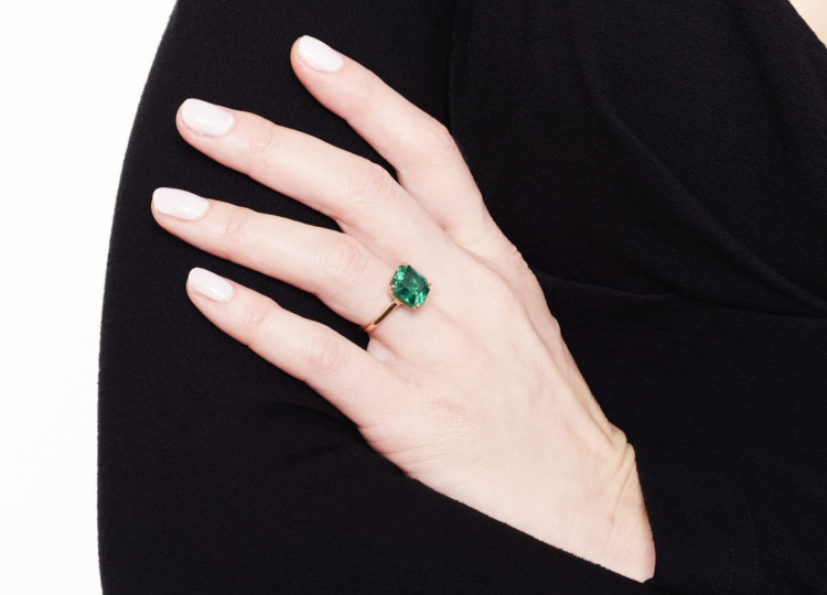 A esmeralda de 6,25 quilates colocada no anel foi encontrada a bordo do famoso galeão espanhol Nuestra Señora de Atocha quando a embarcação se afundou em 1622 na costa da atual Flórida no meio de um furacão, matando quase todos a bordo.