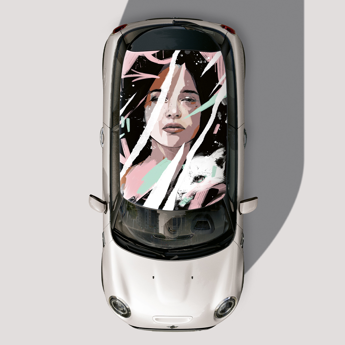 Cada artista concebeu um tejadilho, num total de quatro obras de arte, criadas no contexto de uma iniciativa lançada pela marca automóvel pertencente ao Grupo BMW e que conta com a parceria da Underdogs.