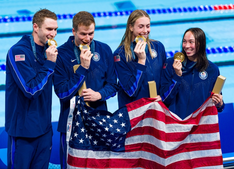 A natação é uma dessas modalidades. E este sábado, houve mesmo recorde do mundo batido nesta disciplina mista, com os EUA a fixarem uma nova marca mundial na final que lhes valeu a conquista do ouro nos 4×100 metros estilos mistos. A final foi nadada na piscina da La Defense Arena, tendo a equipa norte-americana superado a China e a Austrália.