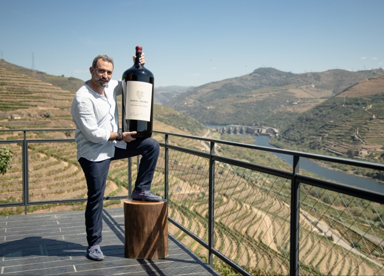 Esta foi a primeira garrafa de vinho de 27 litros que chegou ao Gordon Ramsay. “Queria fazer algo que nunca ninguém havia feito. Tive esta ideia e encontrou-se a vinha certa, na Quinta da Vacaria, uma das mais antigas quintas do Douro”, avança Emanuel Pesqueira, luso-descendente, sommelier responsável pelos vinhos de toda a cadeia de restaurantes Gordon Ramsay.