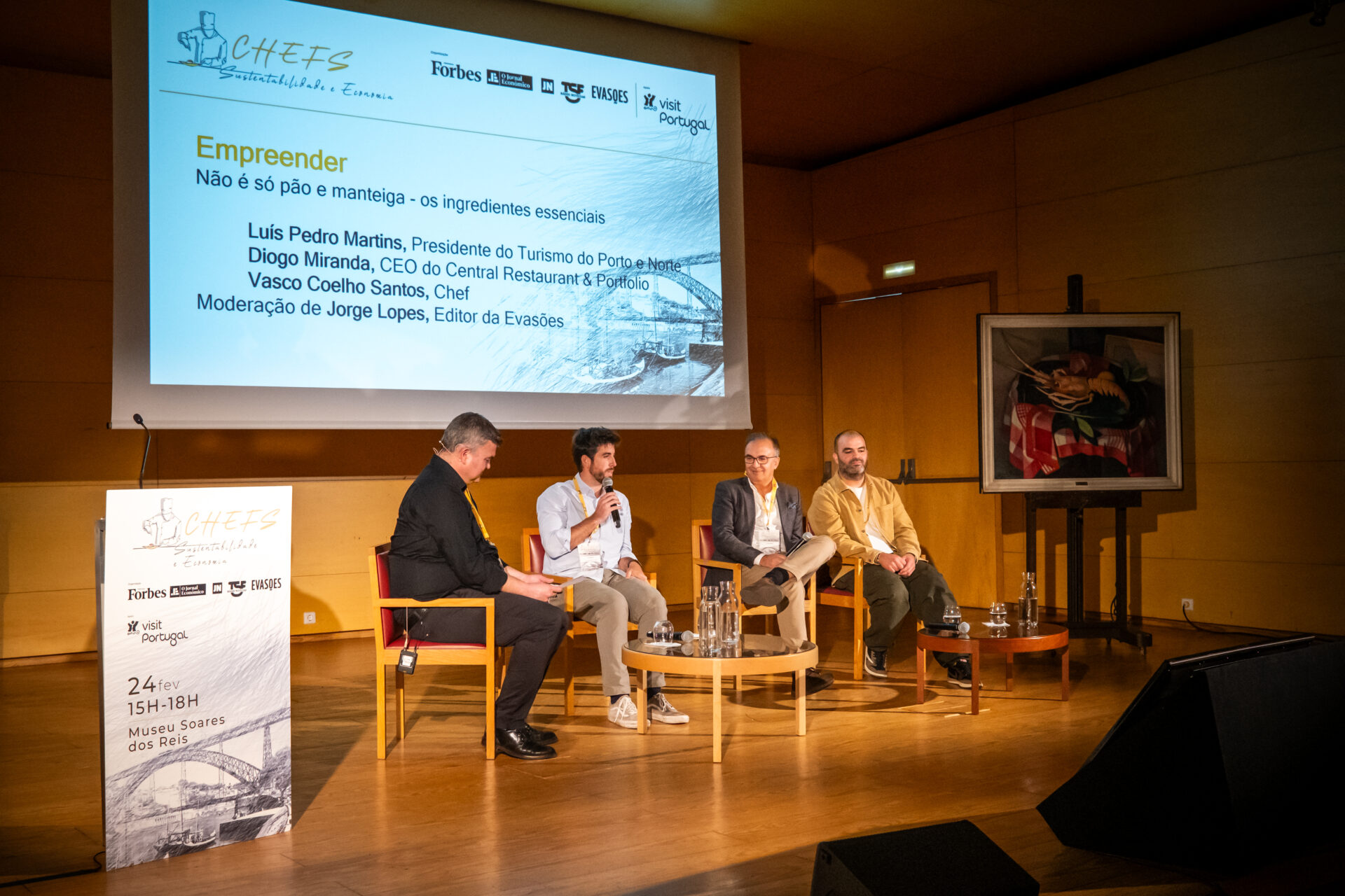 Na indústria da restauração, “empreender não é só pão e manteiga”. Foi este o mote que deu o pontapé de saída para a conversa com três oradores ligados ao tema do evento que decorreu ontem, no Porto, Chefs, Sustentabilidade e Economia, com o apoio da Forbes Portugal e do Jornal Económico, entre outros meios. Luís Pedro Martins, Presidente do Turismo do Porto e do Norte, Diogo Miranda, CEO do Central Restaurants e Portfolio e o chef e empresário Vasco Coelho Santos partilharam com a audiência presente no Museu Soares dos Reis, local onde decorreu a tarde de trabalhos, alguns conselhos importantes para quem se quer tornar empresário da restauração.