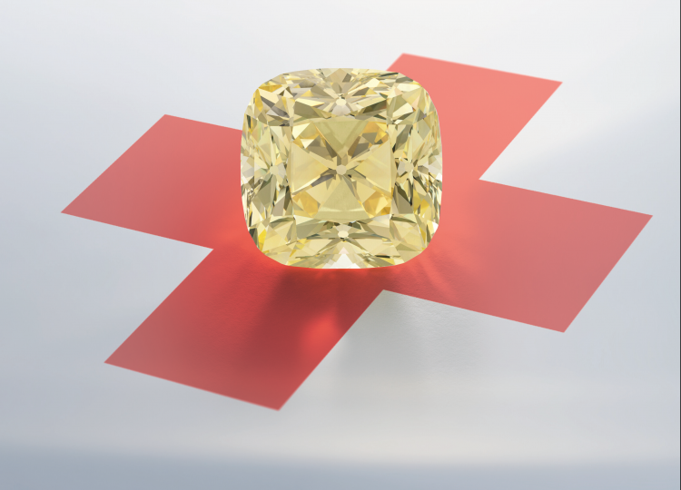 O “Diamante da Cruz Vermelha” é um diamante amarelo canário de 205.07 quilates em forma de almofada (“cushion”) que tem um design de pavilhão distinto que forma uma cruz de Malta e deve chegar a US$ 10,7 milhões (9,9 milhões de euros) em leilão, de acordo com um representante da Christie’s à Forbes.
