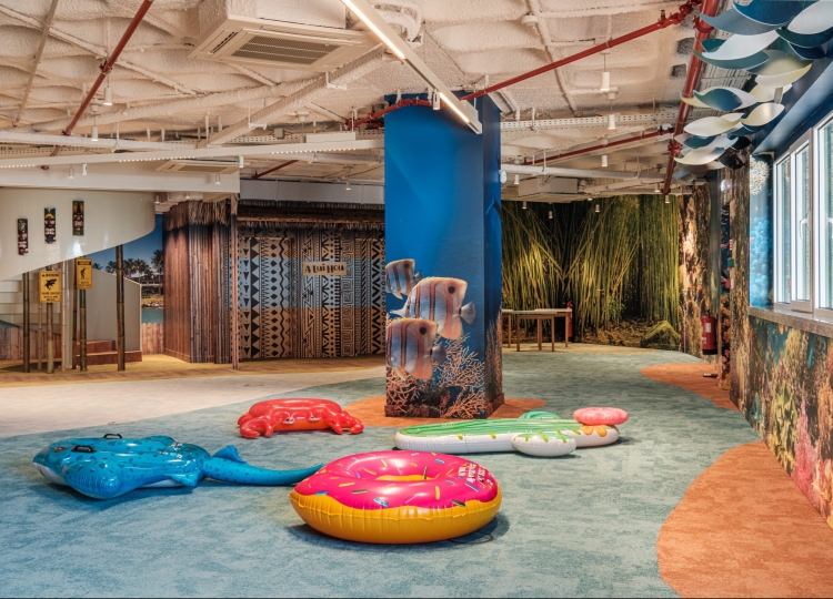 Com diferentes ambientes – oceano subaquático, terreste (montanha e floresta), flora e aves, surf e praia – a village de Honolulu poderá servir para trabalhos de teambuilding, apresentações e eventos em grande escala. A ausência das tradicionais workstations, pretende criar um ambiente mais amplo com o objetivo de proporcionar uma atmosfera acolhedora e descontraída.