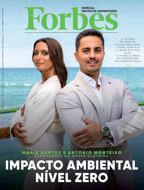 Em 2019, Maria Santos e António Monteiro quiseram criar uma marca de roupa de banho com atenção à sustentabilidade. Cinco anos depois, boa parte dos têxteis usados pela Drope é feita a partir de lixo marinho reciclado. Os tecidos de fornecedores europeus seguem para o Norte de Portugal, onde os biquínis são costurados. Por fim, vendem-se online, e seguem em caixas recicláveis e sem plástico.